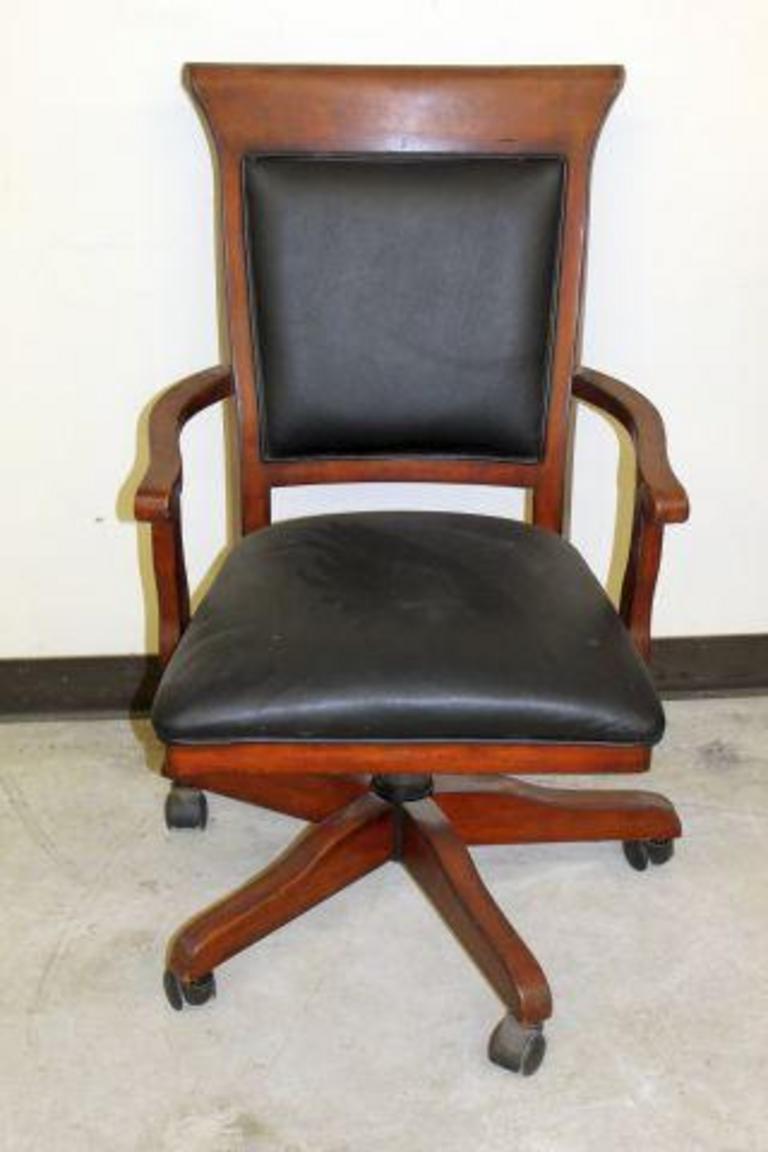 Btod High Back Leather Office Chair Mahogany Wood Base . Office Chair Porthos Home Selma Office Chairs With Wheels, Curved Wooden Armrest.